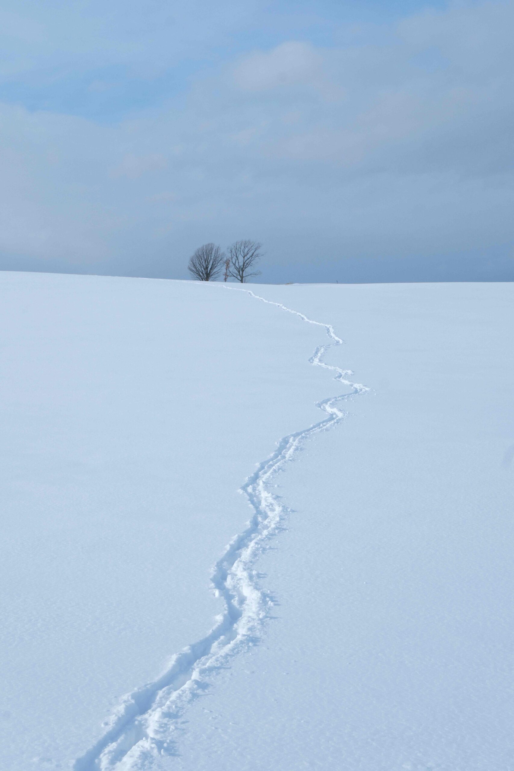 雪の朝は、動物たちの行動の軌跡である。おそらく狐であろう。はるか遠くの樹木を目指しているような足跡をのこしていた。